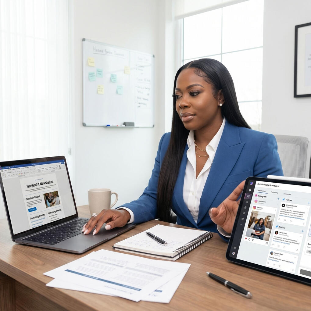 Clear and organized communication support that helps nonprofit programs share updates, announcements, and community impact across digital platforms.